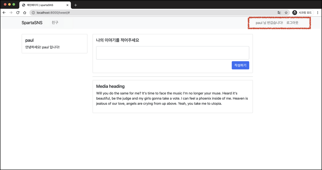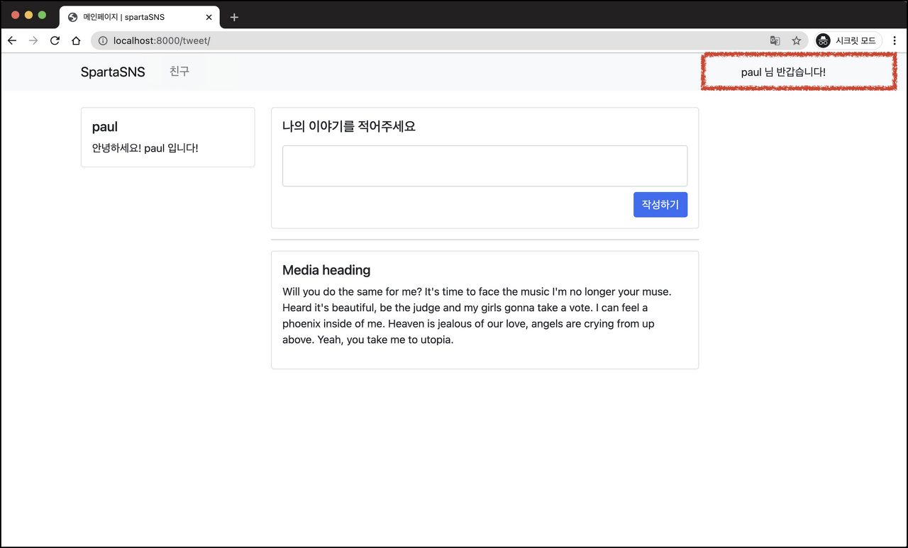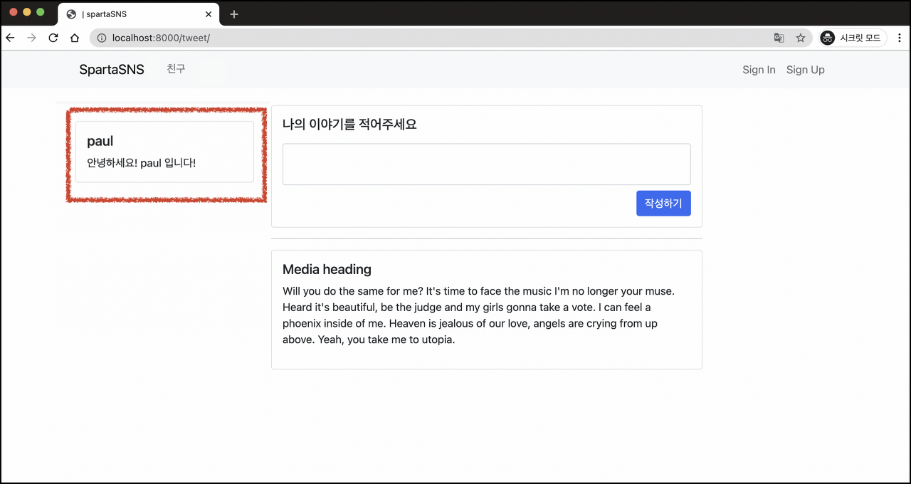 - templates 폴더에 tweet 폴더를 찾아주시고, 그 아래에 있는 home.html 수정