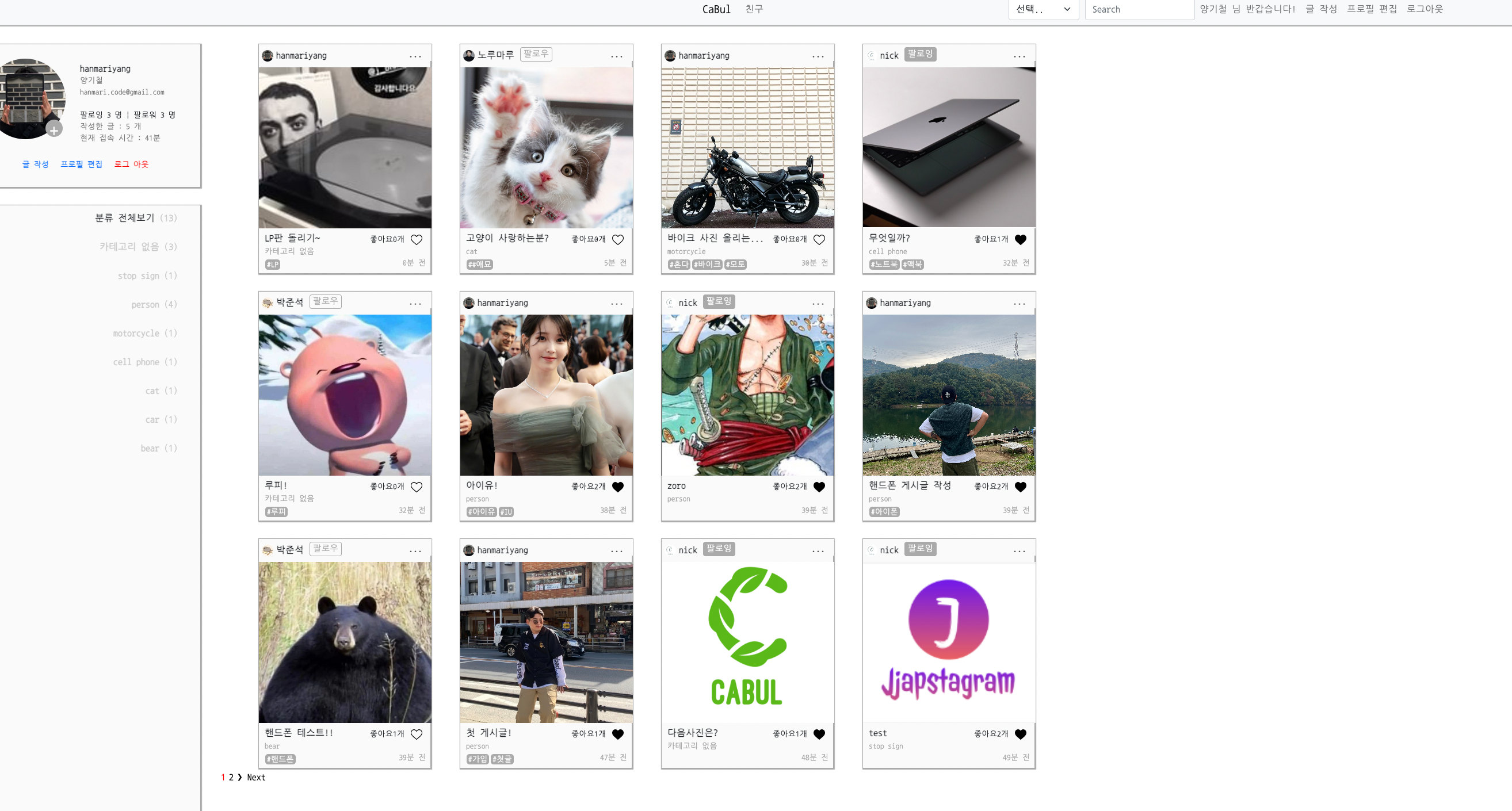 프로젝트명 ...CaBul...뭔가 까불...지마...? 이런 느낌인가