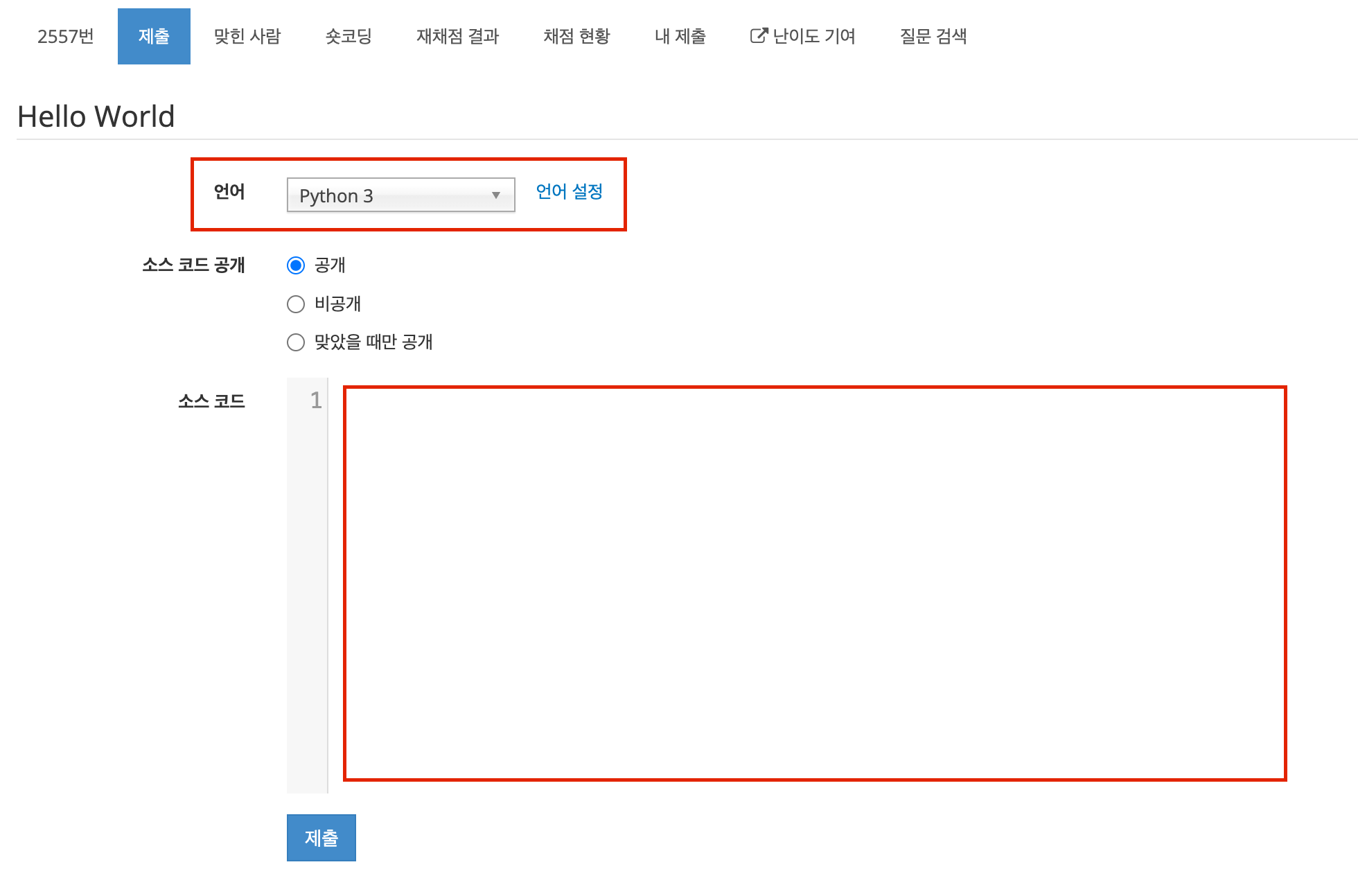 이건 문제 번호와 옆에 제출을 누르면 문제에 대한 답을 제출 할 수 있다.
