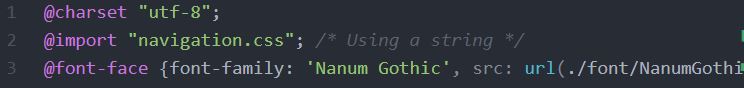 @로 시작하는 모든 CSS규칙(@media, @font-face, @import)은 외부 스타일시트 일때나 html내부에 바로 작성한 스타일시트 일때나 그 어떤규칙들 보다도 상단에 두는 게 좋습니다.
